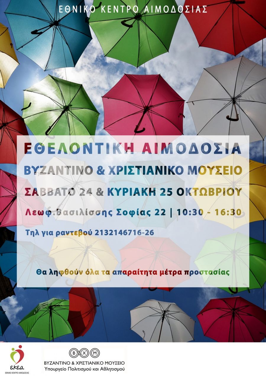 ΕΘΕΛΟΝΤΙΚΗ ΑΙΜΟΔΟΣΙΑ ΣΤΟ ΒΥΖΑΝΤΙΝΟ & ΧΡΙΣΤΙΑΝΙΚΟ ΜΟΥΣΕΙΟ (24-25/10/2020)