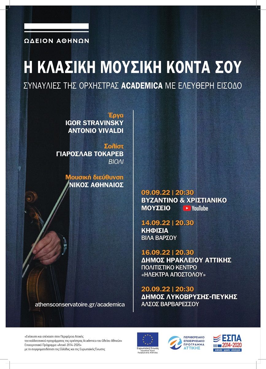 Συναυλία της ορχήστρας Academica στο Βυζαντινό και Χριστιανικό Μουσείο, την Παρασκευή, 9 Σεπτεμβρίου 2022, ώρα 20:30.