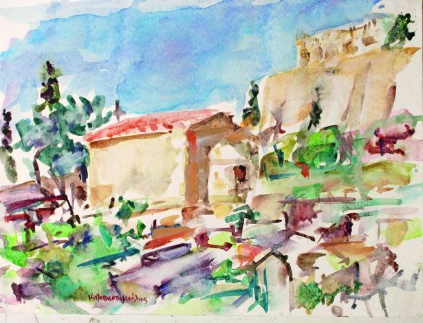 Στην έκθεση παρουσιάζονται 50 έργα σε ακουαρέλα με θέμα τους την τοπιογραφία γύρω από τον βράχο της αθηναϊκής Ακρόπολης. Ο Κώστας Παπασταμούλης συνεχίζοντας την παράδοση της ζωγραφικής αποτύπωσης ιστορικών τόπων αποδίδει στις ακουαρέλες του τον αρχαιολογικό χώρο από κάθε γωνιά της πόλης, κάθε ώρα της ημέρας, σε διαφορετικές καιρικές συνθήκες και συνδέει το κεντρικό θέμα του, την Ακρόπολη, με τα υπάρχοντα βυζαντινά, μεταβυζαντινά, αλλά και οθωμανικά μνημεία.