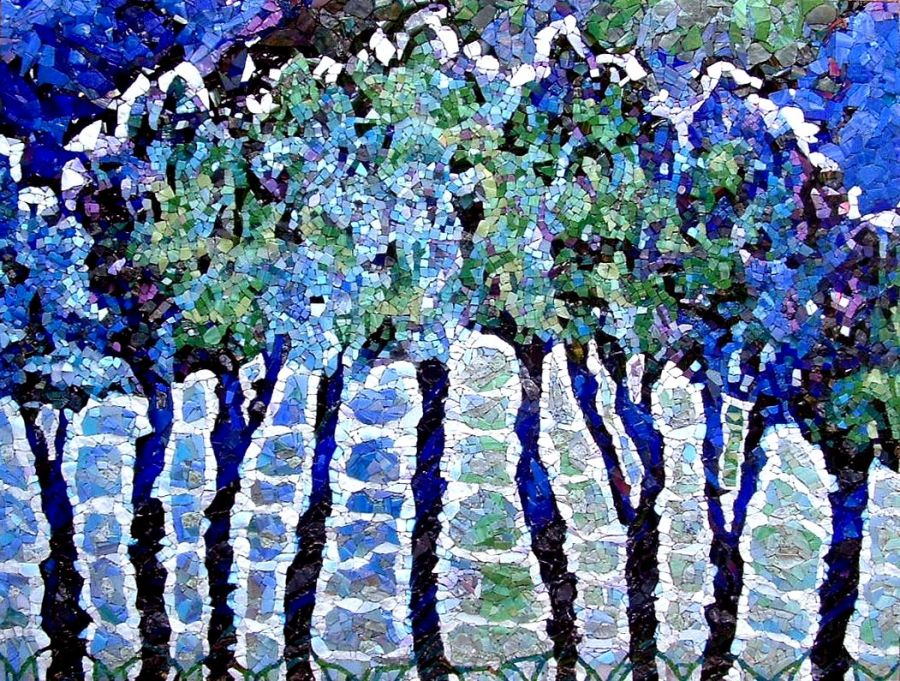 Την έκθεση συναπαρτίζουν 39 ψηφιδωτά της έργα από την καλλιτεχνική παραγωγή των τελευταίων 15 χρόνων. Η καλλιτέχνης δημιουργεί ψηφιδωτά χρησιμοποιώντας την κλασική τεχνική των ρωμαϊκών και βυζαντινών χρόνων με ψηφίδες από φυσικές πέτρες κομμένες στο χέρι και υαλόμαζα σε απειράριθμους συνδυασμούς στην εκτέλεση των καλλιτεχνικών έργων, δημιουργώντας μοναδικά έργα με έντονο προσωπικό χαρακτήρα. Τα χαρακτηριστικά της κάθε φυσικής πέτρας είναι σημαντικά για τη συνολική εικόνα του ψηφιδωτού. Η υφή των κόκκων, η φωτεινότητα και οι διαφορετικές τεχνικές στη χρήση τους προσδίδουν στα έργα την αίσθηση του μοντέρνου και διαχρονικού.