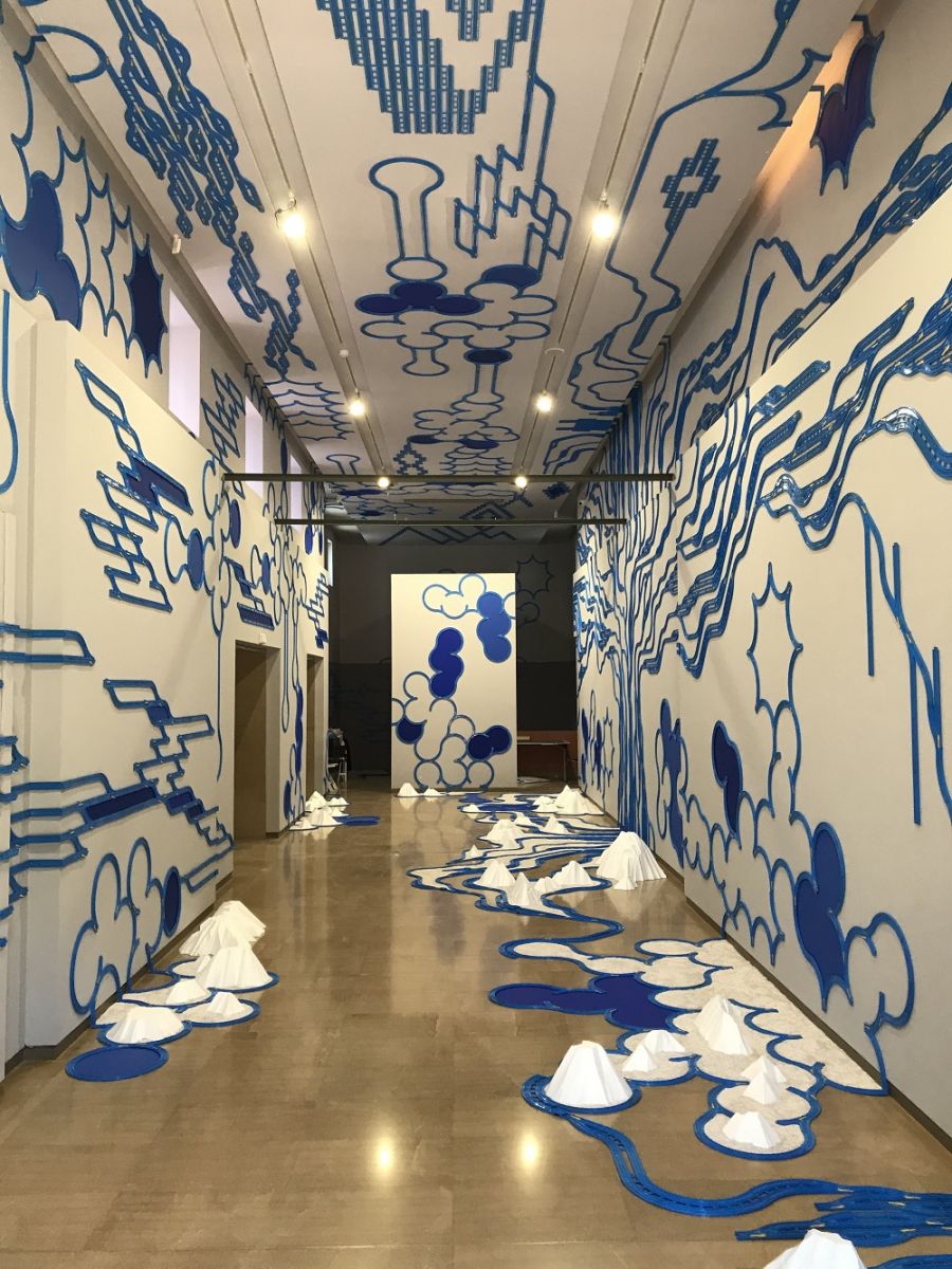 Το «Παραμοντελιστικό γκράφιτι, 2012» είναι μια εσωτερική εγκατάσταση του γνωστού καλλιτέχνη Γιασουχίκο Χαγιάσι. Η εκτέλεση του έργου πραγματοποιήθηκε με την καθοδήγηση του ίδιου του καλλιτέχνη με συνεργείο τεχνιτών και ομάδα συντηρητών του Β.Χ.Μ. υπό την εποπτεία του συντηρητή Δημήτρη Μαργαριτώφ. Η νέα εγκατάσταση, τροποποιημένη κατάλληλα, καλύπτει τοίχους, δάπεδο και οροφή της δεξιάς πτέρυγας του Μουσείου, μήκους 24 μ., πλάτους 5 μ. και ύψους 5 μ. Με ανόργανα βιομηχανικά στοιχεία, ο καλλιτέχνης δημιούργησε μια επιτυχημένη αλληγορία του ανεξέλεγκτα επεκτεινόμενου δικτυακού κόσμου. Με χρήση σιδηροτροχιών από το δημοφιλές στην Ιαπωνία παιχνίδι Pla-rail, έγχρωμο χαρτί κολλάζ, φύλλα πολυστυρενίου και άμμο, κατασκευάστηκε μια «εντός των τειχών» φανταχτερή αλλά παγωμένη, μηχανιστική και χαοτική πραγματικότητα όμοια με αυτή που επέβαλε στις ζωές μας το σύγχρονο μοντέλο της παγκοσμιοποίησης. Κάθε συναίσθημα και συγκίνηση δημιουργούνται και αναλώνονται στην επιφάνεια των πραγμάτων, άσκοπα επαναλαμβανόμενα στο διηνεκές. Το έργο είναι ένα καλλιτεχνικό σάλπισμα ενσυνειδησίας και έγερσης από τη μακαριότητα του εφησυχασμού.